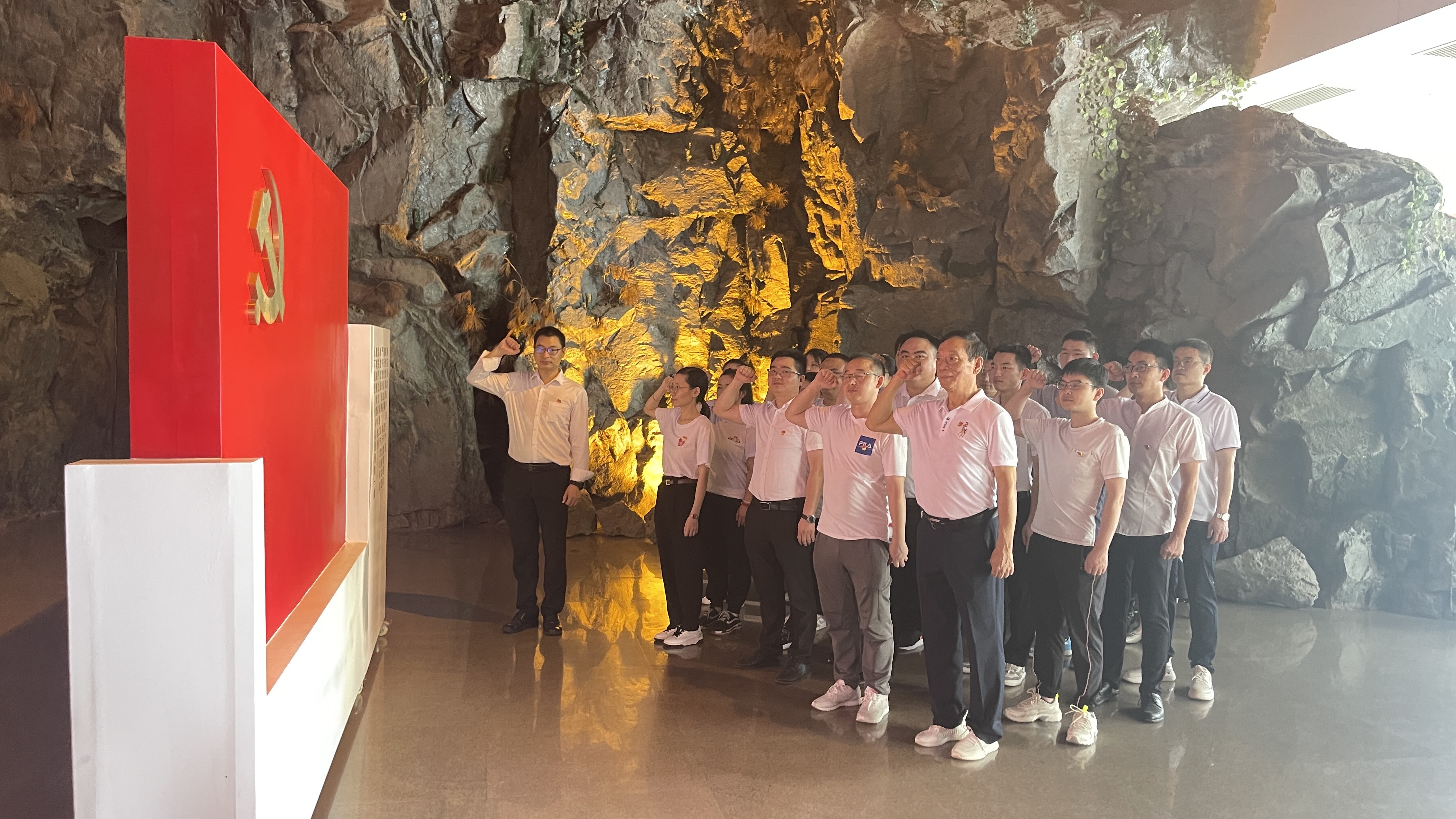 十點整,全體黨員走進陳列館,大家手握右拳高舉過肩,重溫入黨誓詞,表達強烈的愛黨、愛國之情。